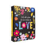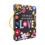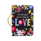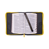 Carry your Bible in style with the Divine Details feature-packed cover. Not only does it have a secure carrying handle, reinforced spine for added protection, and back pocket storage, but it also boasts beautiful details such as gold foil, heat stamp, and appliques. Plus, a convenient ribbon bookmark featuring an uplifting scripture verse and a fabric loop to hold your pen. And with the added zippered closure, your Bible will stay safe and protected wherever you go.
