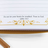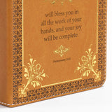 Our Divine Details collection feature deluxe bible covers with matching journals. Intricate details, fancy embellishments & fine hot stamp design puts this collection in a category all its own. Zippered journals have 160 pages & feature scripture on the cover as well as on each page.
