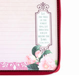 Our Divine Details collection feature deluxe bible covers with matching journals. Intricate details, fancy embellishments & fine hot stamp design puts this collection in a category all its own. Zippered journals have 160 pages & feature scripture on the cover as well as on each page.