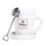White Flower Pot Mug w/Scripture - “Be Unique”