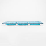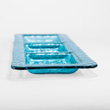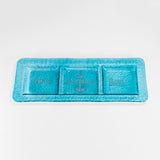 3 Section Tray dimensions: 6" x 16". Made of Bubble Glass. Easy to Clean. Parto of the Nautical Collection. A four compartment bubble glass tray great for sorting and serving your favorite appetizers, snacks, veggies, chips and dips. Material: Glass.