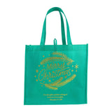 Our Eco Tote reusable shopping bags feature Scripture verse. Bags fold flat, can hold up to 20 pounds & have a small loop for hanging. Perfect for groceries, Bible study or as an everyday bag! Reusable shopping bags with contrasting side accent colors. Holds up to 20 lbs. Dimensions: 12. 5" x 6" x 12". Small loop for hanging. Material: Nylon.