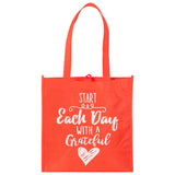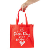 Red Eco Tote Bag - "Start Each Day With A Grateful Heart"