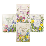 Let your loved ones know you're praying for them with a beautiful inspirational card from Divinity Boutique. This boxed set of cards features beautiful floral artwork with uplifting sentiments and scripture verses. Each box of bulk cards contains 12 full color cards and envelopes (3 cards each of 4 designs).