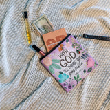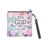 Make travel a breeze with the Swag Bag! This faux leather zipper bag in designer art is fully lined inside, providing the perfect size for all your essentials while on the go. With a wristlet for hands-free movement, this versatile bag is also easy to clean, making it a must-have for your next adventure.