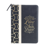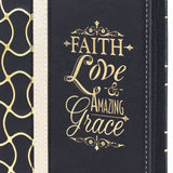 Zippered Journal - Black And Gold Faith Love Amazing Grace