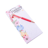 This convenient listpad and pen duo features 100 sheets - so you'll have more than enough space to organize your daily to-do's and reminders with ease. Plus, the strong magnet keeps your listpad in place. Measuring at 4.25" x 9", it's the perfect size to keep on your fridge, desk, or anywhere else you need quick access to your lists.
