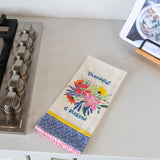 A perfect addition to any kitchen! Made of high-quality 100% cotton, this towel is machine washable and boasts an embroidered sentiment and printed artwork, complemented by a coordinating fabric strip and crochet trim. It's a beautiful, practical, and durable piece that's sure to add warmth to your home and hearts of your guests.