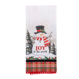 Bring joy to holiday hosting with this festive tea towel, thoughtfully crafted to celebrate the season. Made from 100% cotton and measuring 18" x 28", each towel features an embroidered sentiment, printed artwork, coordinating fabric strip, and crochet trim for a charming, handcrafted feel.